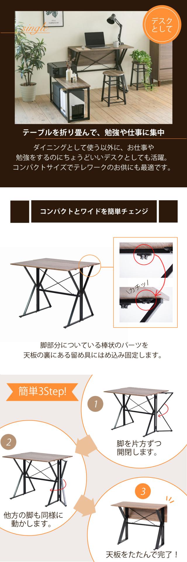 [外寸](テーブル)幅90×奥行45/70×高さ72.5cm