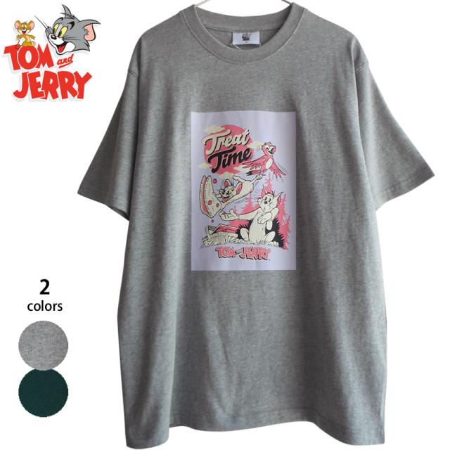 セール 送料無料 トムとジェリー ジェリー メンズ Tシャツ レディース ビッグTシャツ 半袖 treat time Tom&Jerry ピクニック アメコミ ペアルック レトロ コミック 80年代 リンクコーデ 男女兼用 大人 春夏 緑 グレー アメリカンコミック エモい かわいい
