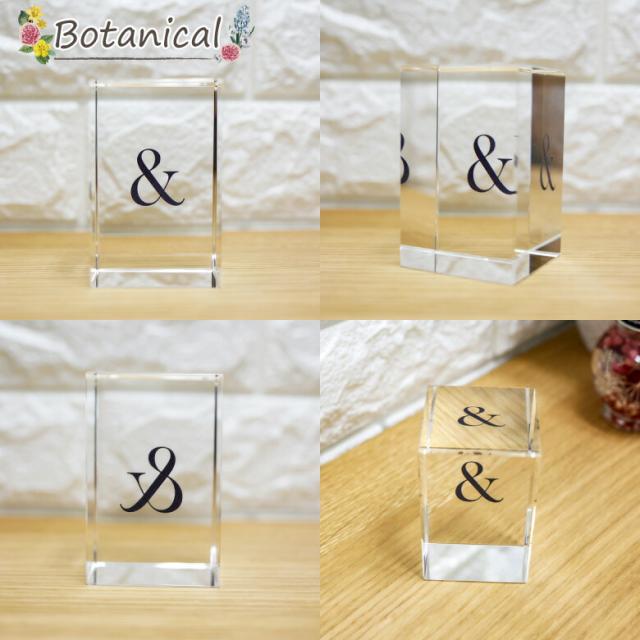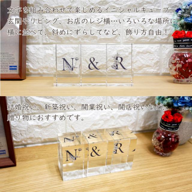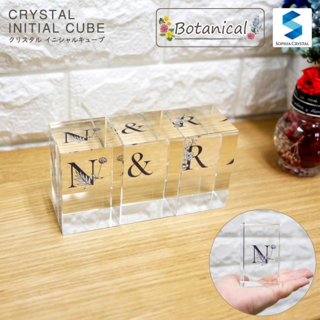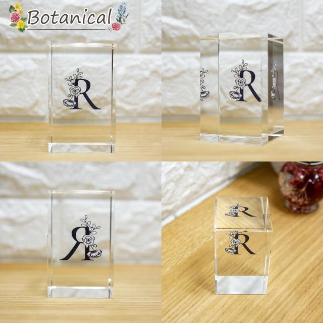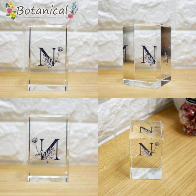 クリスタル イニシャルキューブ CB558-ic-h 結婚祝い 開店祝い 新築祝い 周年記念 退職祝い オリジナル ギフト プレゼント お祝い アルファベット 名入れ おしゃれ オブジェ インテリア ペーパーウェイト 白黒 ボタニカル.