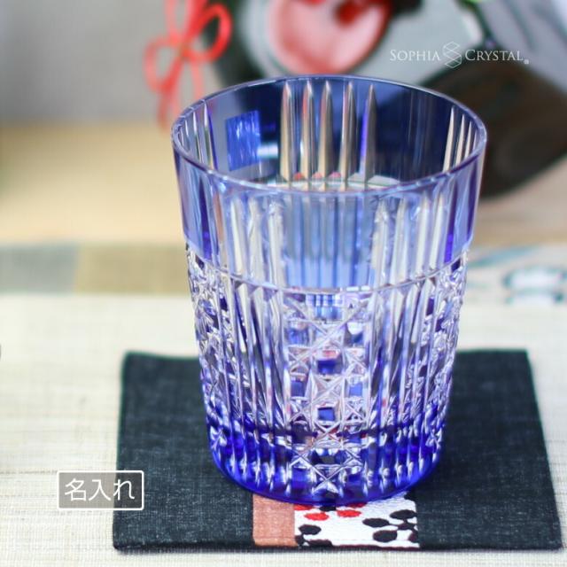 名入れ 切子グラス カガミクリスタル t557-2471-ccb シングル グラス 青 日本製 江戸切子 還暦 古希 喜寿 米寿 金婚式 銀婚式 退職祝い ギフト プレゼント 記念品 周年記念 誕生日 両親 長寿 お祝い 内祝い おしゃれ 名前入り