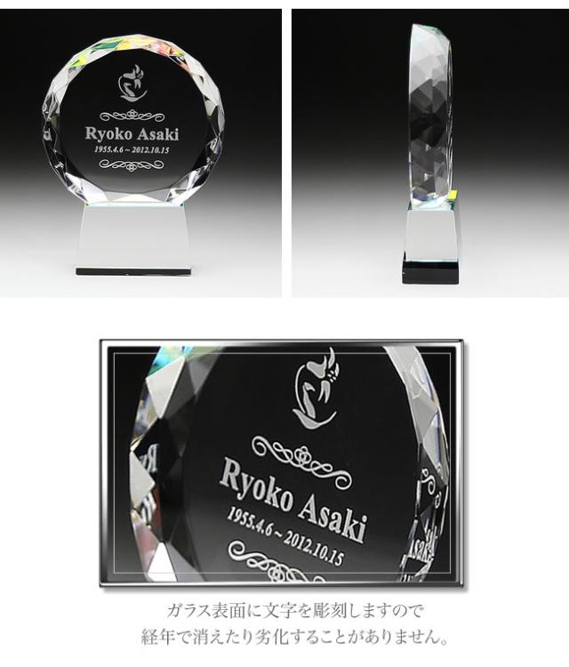 現代仏壇にマッチする美しいお位牌をお作りします。クリスタルガラスなので傷がつきにくく、変色など経年の劣化が非常に少なく美しさが持続します。 | |