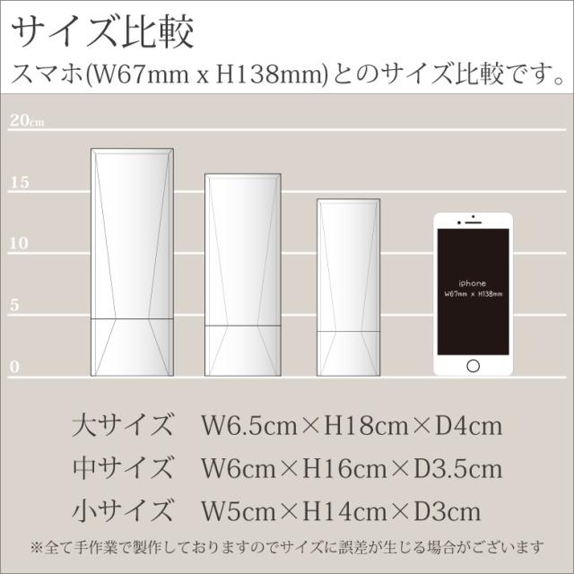 【小】高さ14cm x 幅5cm x 奥行3cm |
