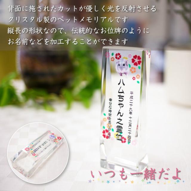 ペット 位牌 クリスタル ガラス KP-23(中) 写真 カラー 両面印刷 誕生石 レーザー 彫刻 フォト 遺影 仏具 供養 ペットメモリアル お位牌 手元供養 仏壇 葬儀 49日 虹の橋 思い出 名入れ かわいい キラキラ きれい 犬 猫 うさぎ インコ 小動物.