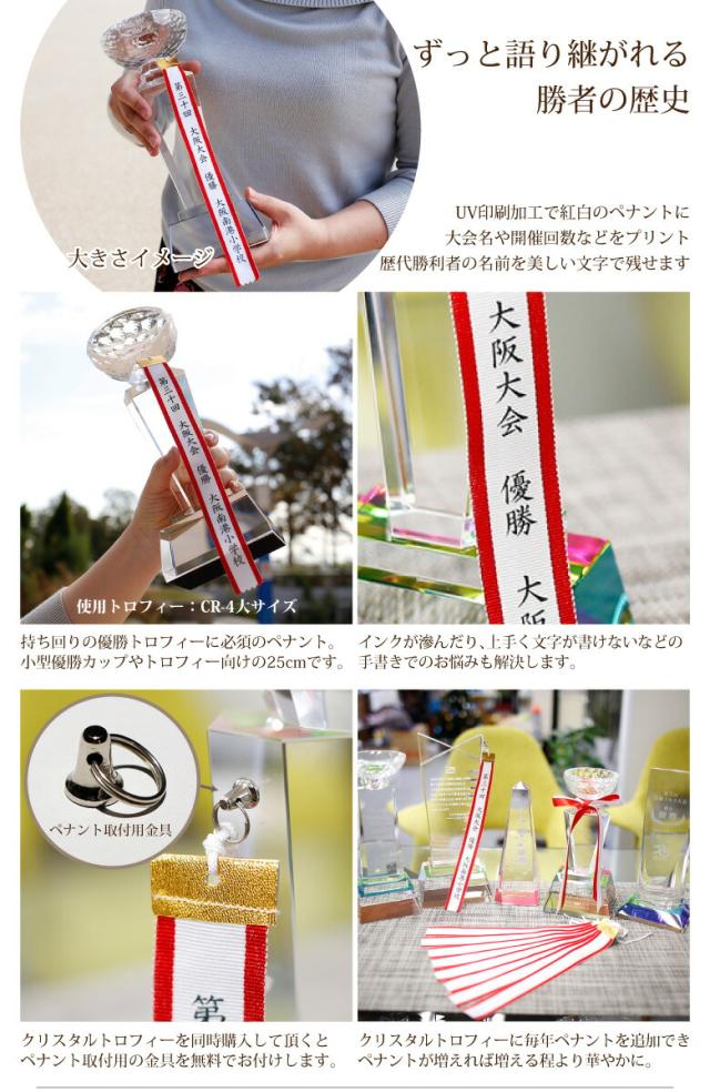 クリスタルトロフィーを同時購入していただくと、ペナント取付用の金具を無料でトロフィーに接着することも可能です。