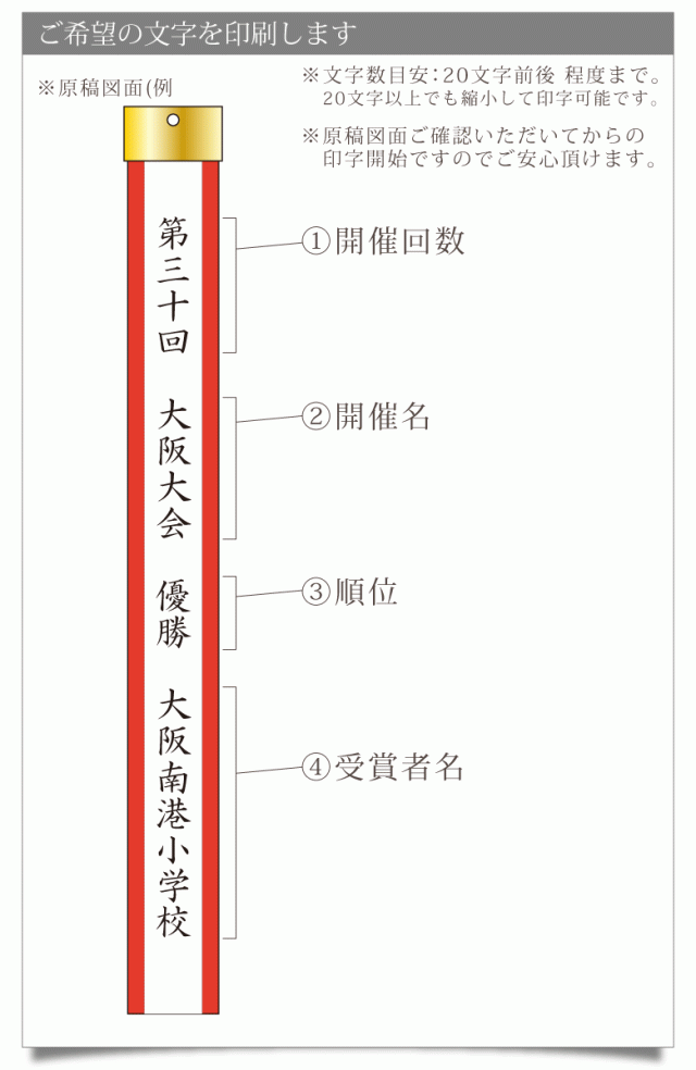 ペナントに直接印刷するので、インクが滲んだり上手く文字が書けないなどの手書き特有のお悩みも解消。さらにクリスタルトロフィーを同時購入していただいた方には、ペナント取付用の金具を無料でトロフィーに接着いたします。