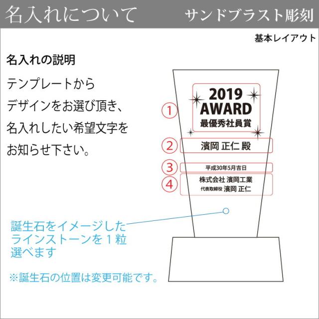 説 明 | 1点1点職人の手作業でカット・研磨をおこなった、お手頃サイズのホワイトガラス表彰盾です。 |