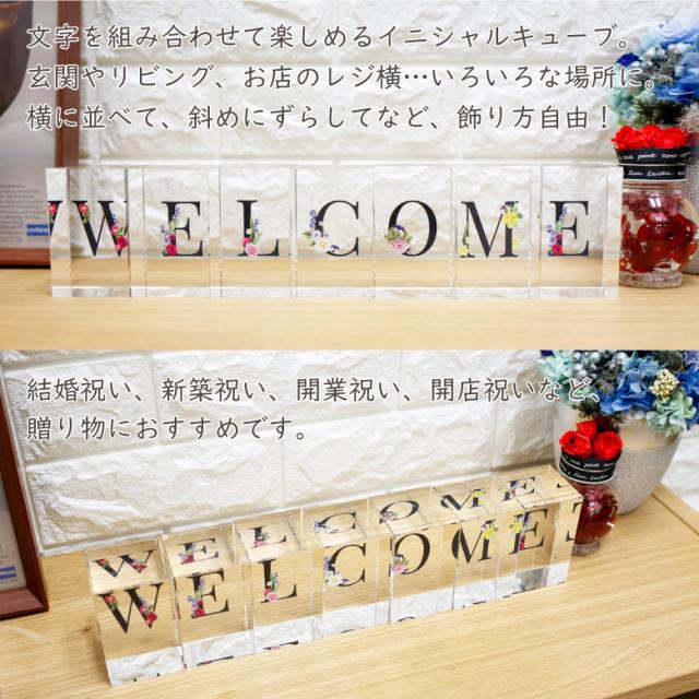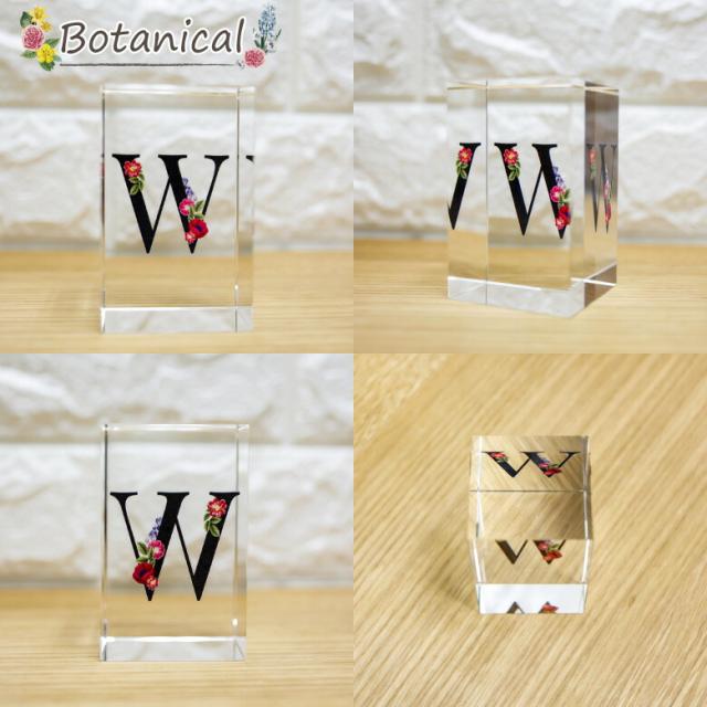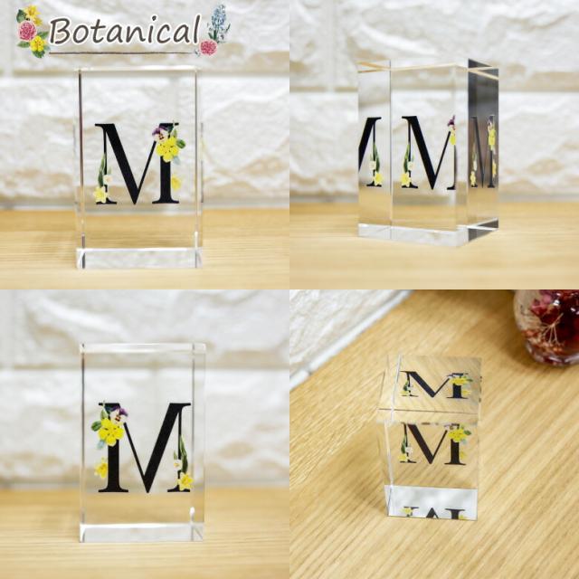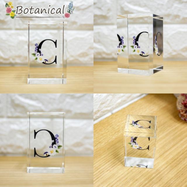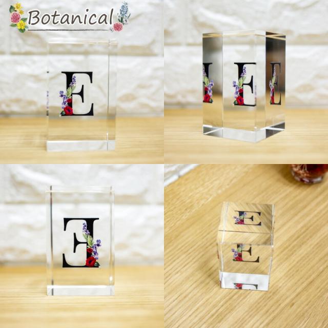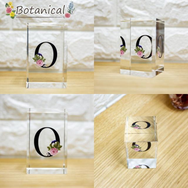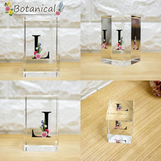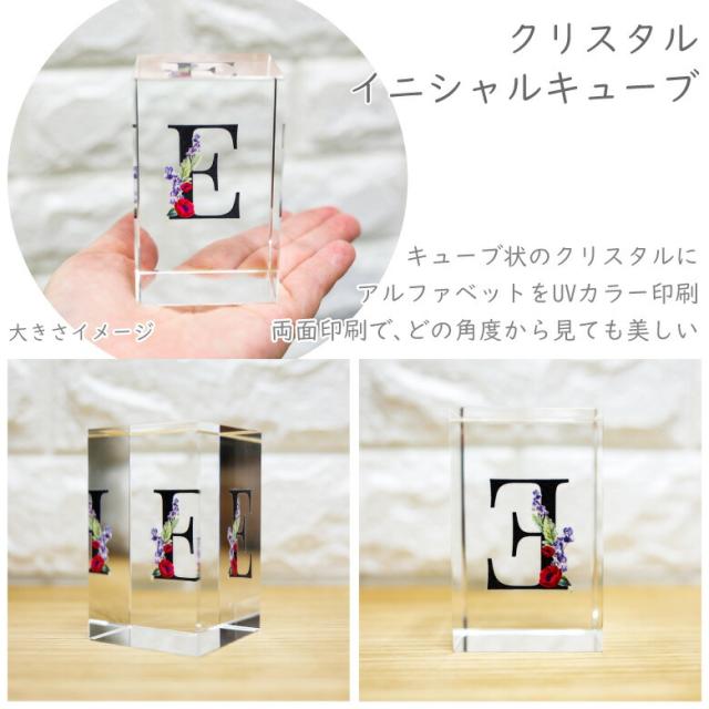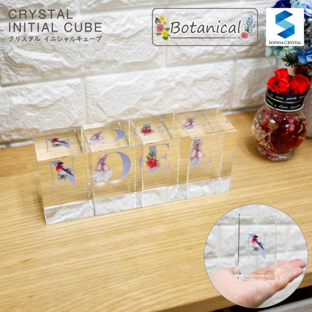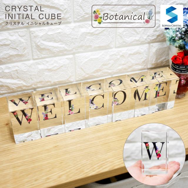 クリスタル イニシャルキューブ CB558-ic-f 結婚祝い 開店祝い 新築祝い 周年記念 退職祝い オリジナル ギフト プレゼント お祝い アルファベット 名入れ おしゃれ オブジェ インテリア ペーパーウェイト 文鎮 ボタニカル.