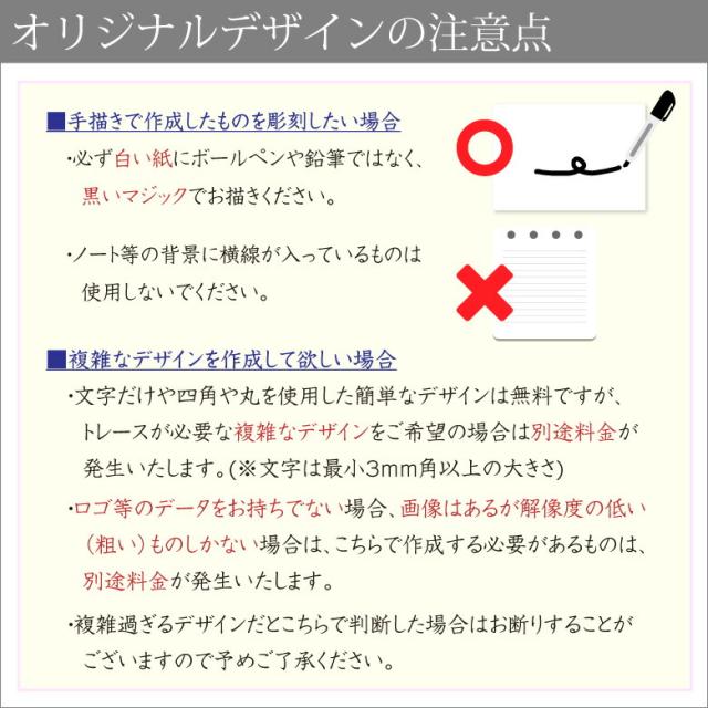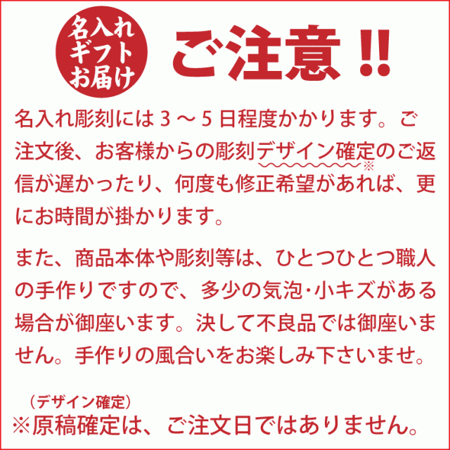 ※価格に含まれるもの (商品代金・校正代金・彫刻代金) (ロゴマークなど別途データを作成する必要がある場合には別途費用がかかる場合がございます。) | |