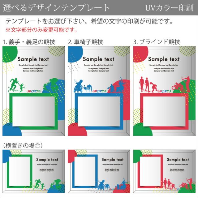 パラスポーツのデザインは、義手・義足の競技、車椅子競技、ブラインド競技、の3種類よりお選びいただけます。
