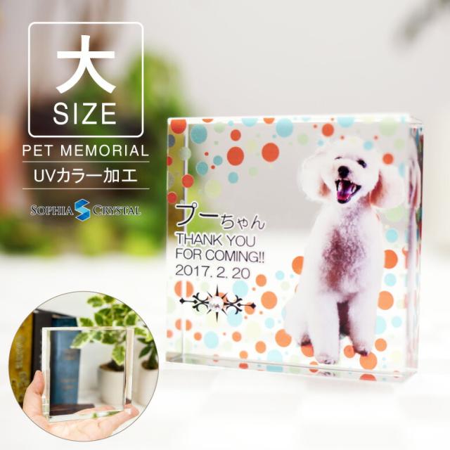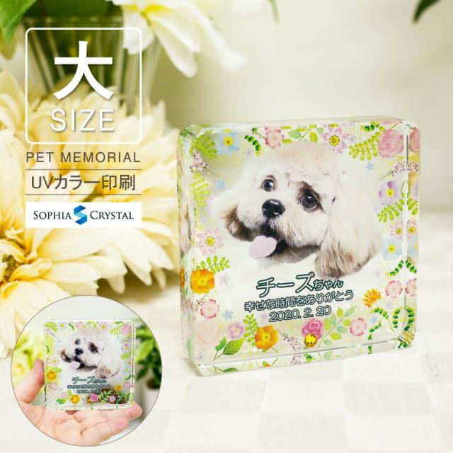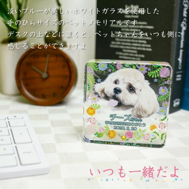 ペット 位牌 KP-29A(大) 写真 カラー 両面印刷 誕生石 フォト 遺影 仏具 供養 ペットメモリアル お位牌 手元供養 仏壇 葬儀 49日 虹の橋 名入れ 彫刻 スクエア ガラス かわいい きれい 犬 猫 うさぎ インコ ハムスター 小動物.