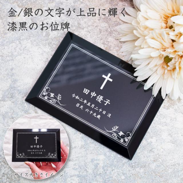 金/銀の文字と美しいデザインが上品に輝く、漆黒のお位牌です。 | |