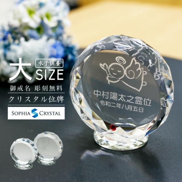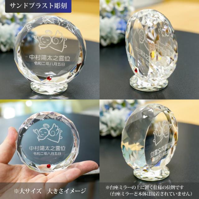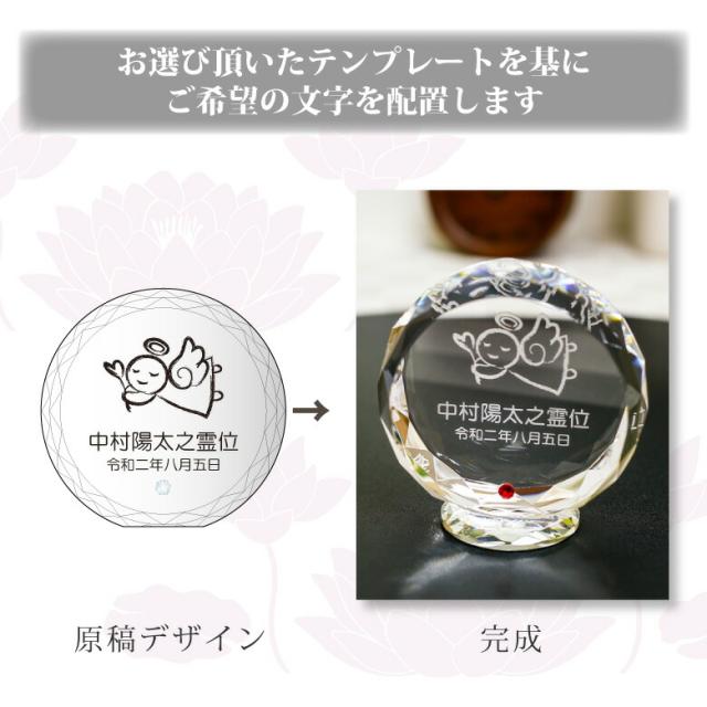 側面のダイヤカットが光を美しく反射する、水子供養用クリスタルお位牌です。 | |