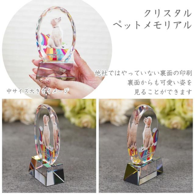ペット 位牌 クリスタル ガラス KP-32B(中) 写真 カラー 両面印刷 誕生石 レーザー 彫刻 フォト 遺影 仏具 供養 ペットメモリアル お位牌 手元供養 仏壇 葬儀 49日 虹の橋 思い出 名入れ ダイヤ かわいい キラキラ きれい 犬 猫 うさぎ インコ 小動物