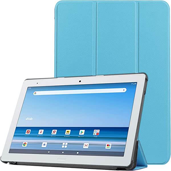 Docomo Dtab d-41A ケース 軽量 薄型 PU レザー スマート カバー 耐衝撃 傷防止 クリア ハード 背面 保護カバー 三つ折り スタンド 簡単装着 NTTドコモ dtab d-41A (スカイブルー) 送料無料