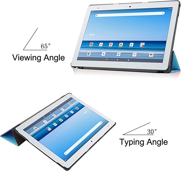 【安定な位置】:人間工学に基づいたスタンド角度で両手を解放されております。動画視聴(65°)とタイピング(30°)の2つのアングルで使えて、お好きな角度で Dtab d-41A を楽しむことができます。