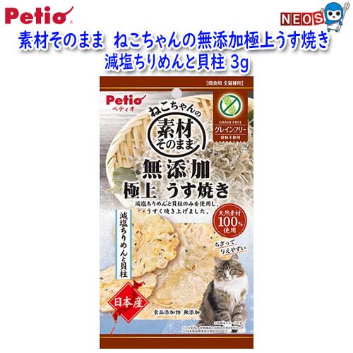 ペティオ 素材そのまま ねこちゃんの無添加極上うす焼き 減塩ちりめんと貝柱 3g