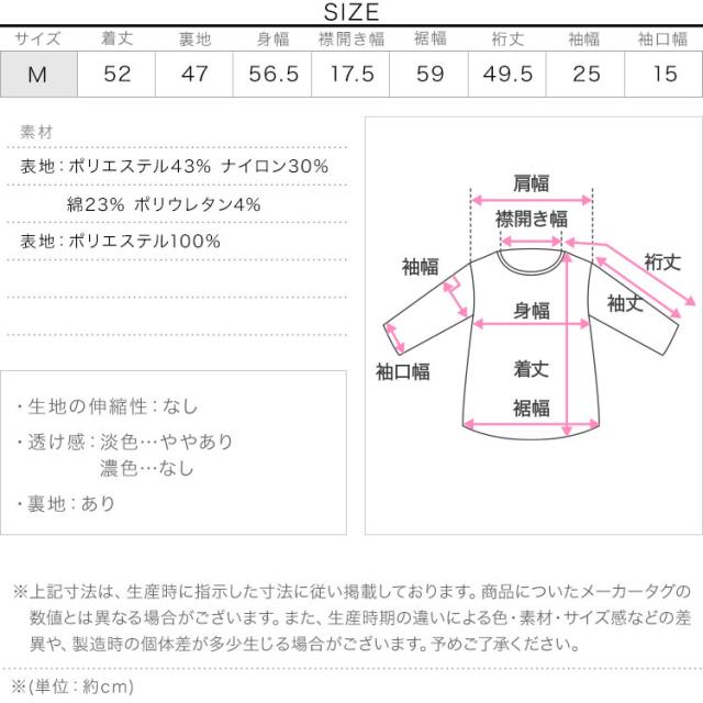 1枚で着映えが叶うおしゃれなブラウス。スクエアネックでデコルテが綺麗に見え、大人っぽく着用していただけます。コンパクトな丈感でバランスよく着こなせ、上半身に目線が集まりスタイルアップ効果も◎【素材・サイズ感】表情のある素材感でシンプルコーデも華やかに仕上がります。柔らかな裏地付きで楽な着心地です。ややゆとりのあるシルエットでインでもアウトでも使いやすく、幅広い組み合わせが可能です。五分袖で二の腕周りをしっかりカバーし、華奢見え効果も。※キャンセル/変更不可※お届けまでの日程について