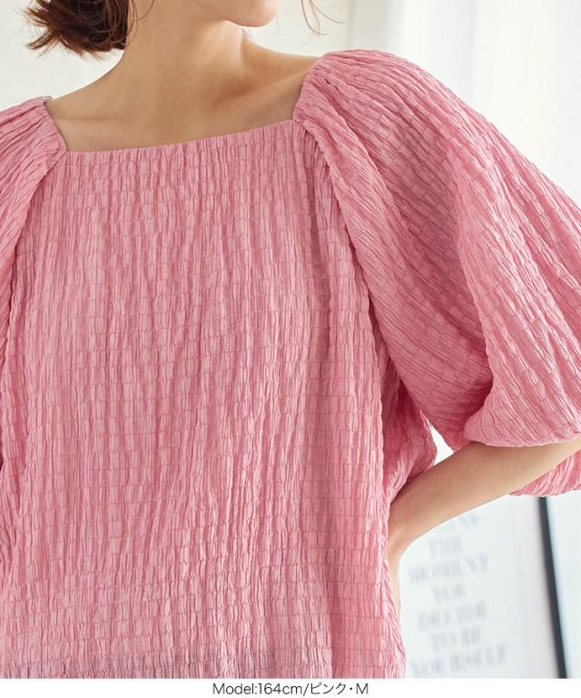 春新作 スクエアネックバルーンスリーブブラウス C6724 入荷済 レディース ブラウス シャツ スクエアネック ぽわん袖 ボリュームスリーブ 五分袖