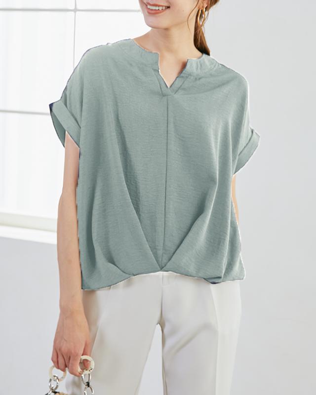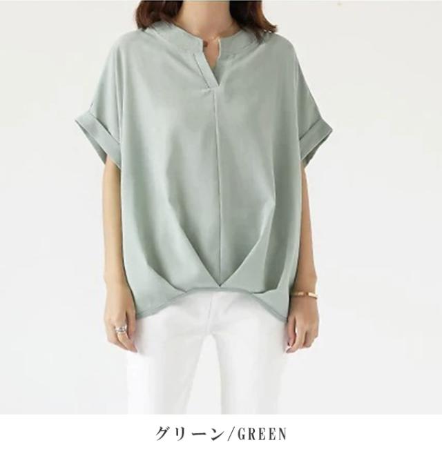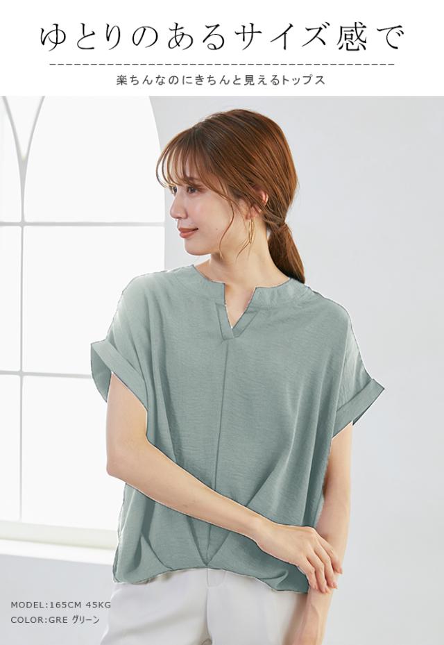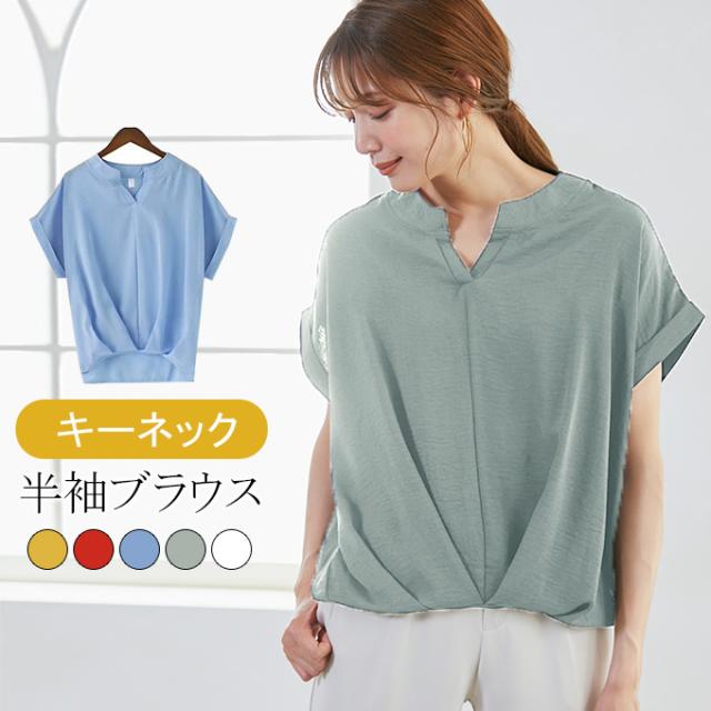 キーネック半そでブラウス レディース ブラウス オフィス 通勤 キーネック