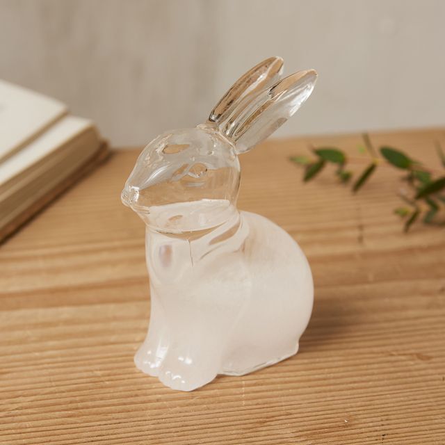耳を立てちょこんと行儀よく座る可愛いガラスのうさぎ。