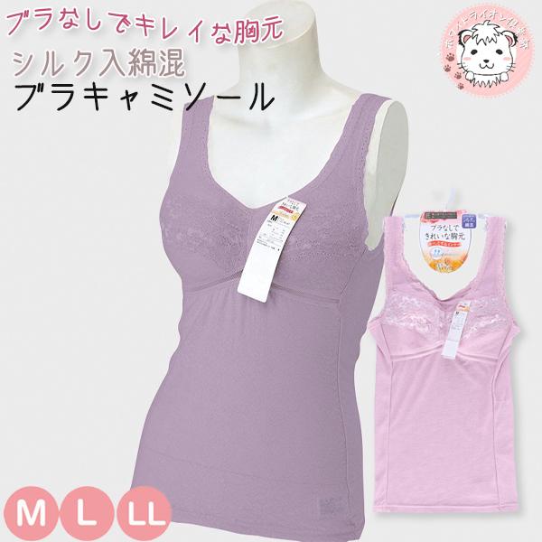 ブラキャミ ブラトップ レディース ブラなしでキレイな胸元 シルク入り 綿混 ラン型ブラキャミソール M/L/LL おためし