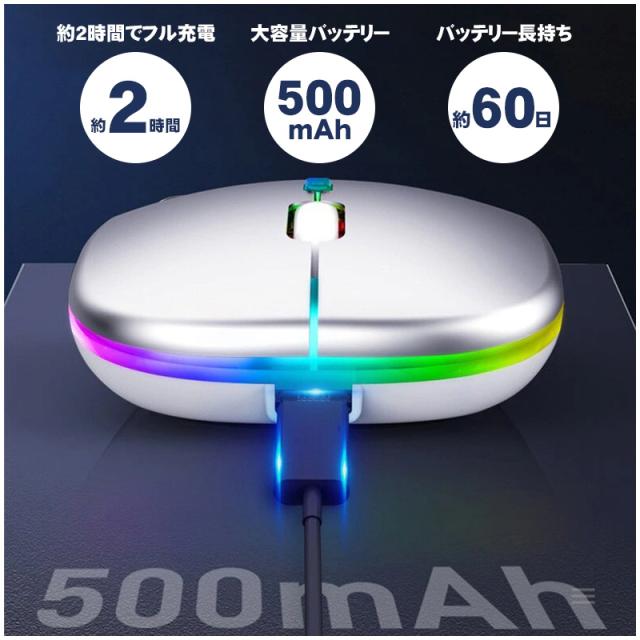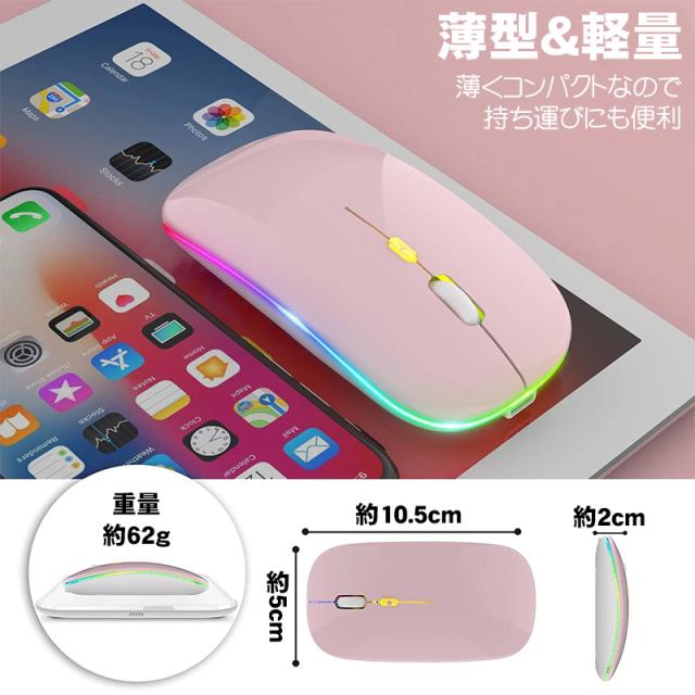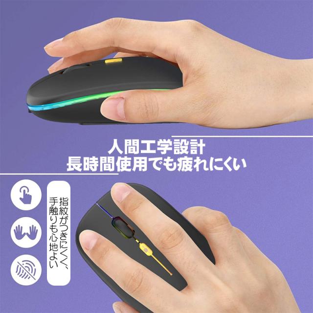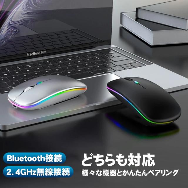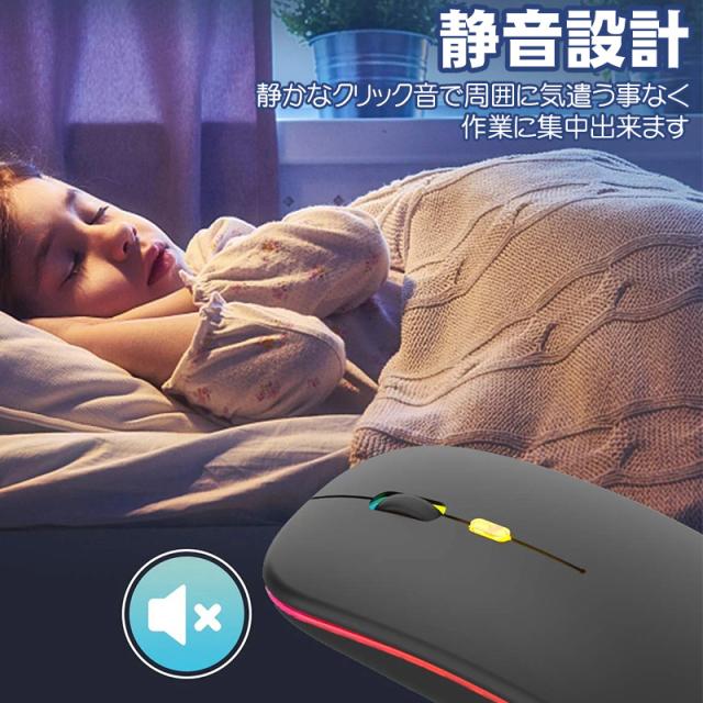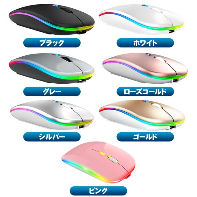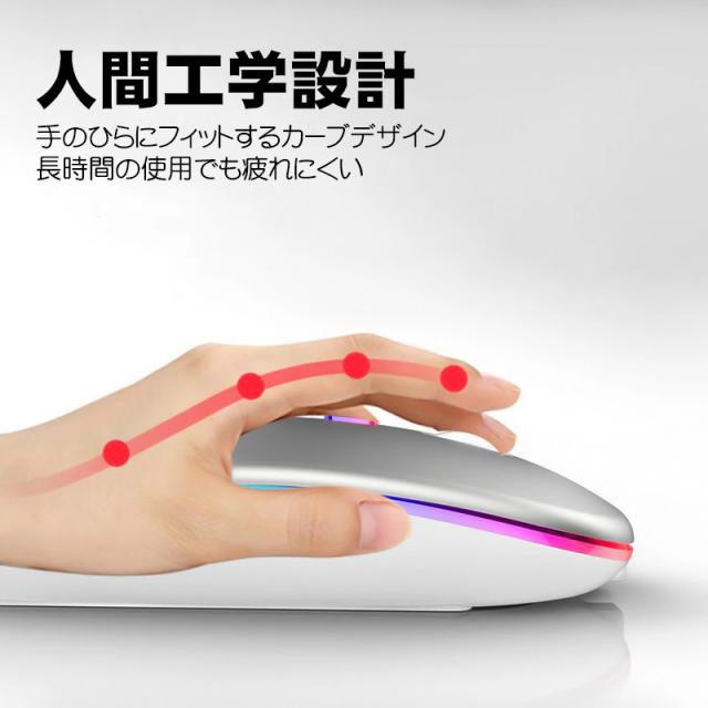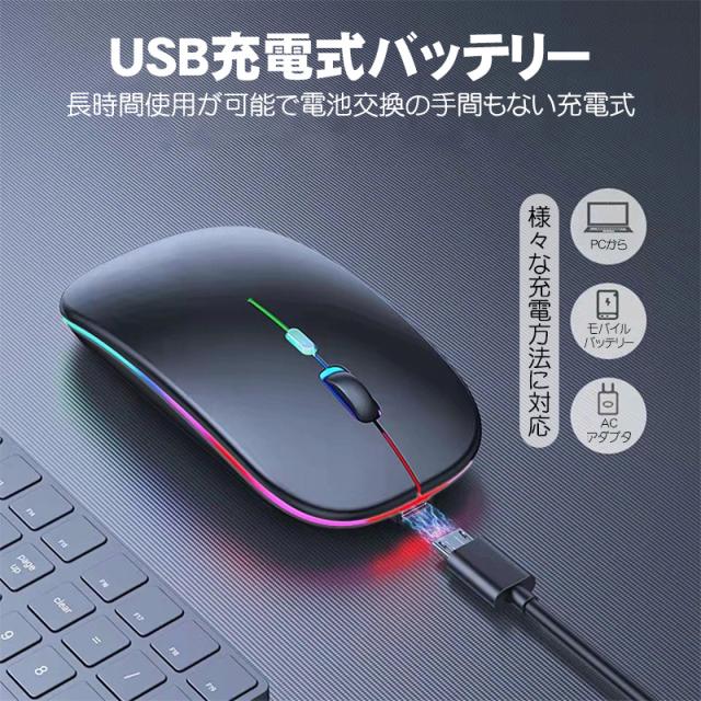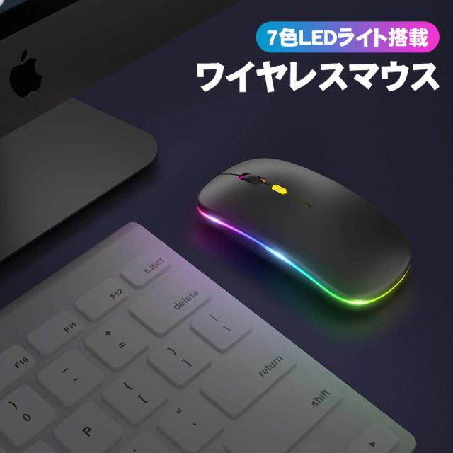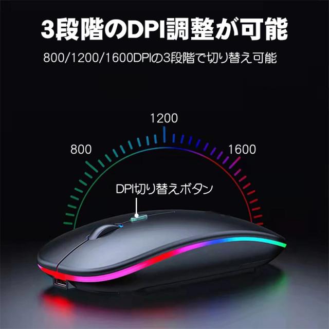 ワイヤレスマウス 無線 充電式 7色LEDライト付 Bluetooth 2.4GHz USBレシーバー 薄型 静音 DPI調整 カウント切り替え 800 1200 1600DPI バッテリー長持ち 省エネルギー 仕事 ゲーミング オフィス 【送料無料】
