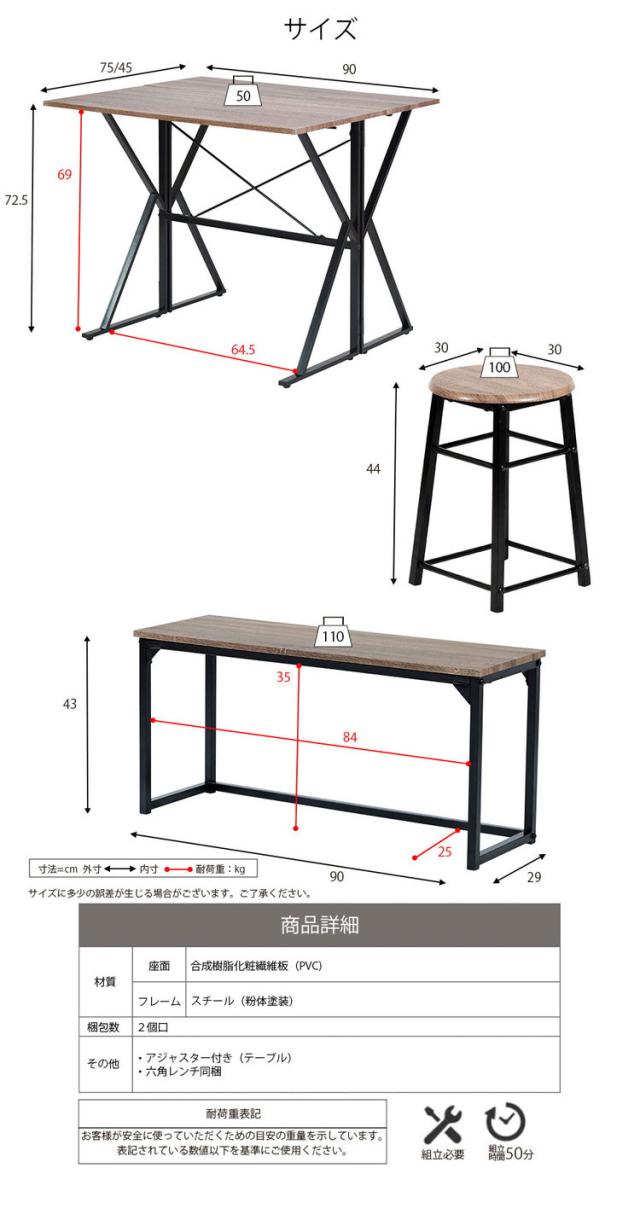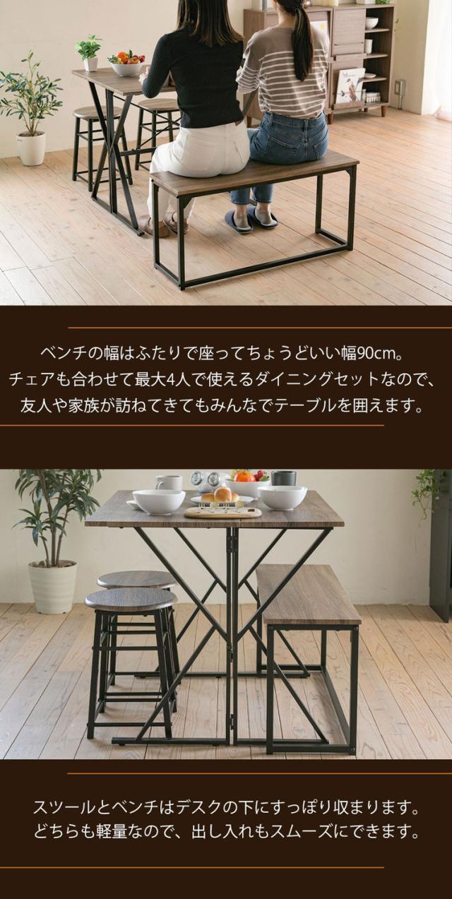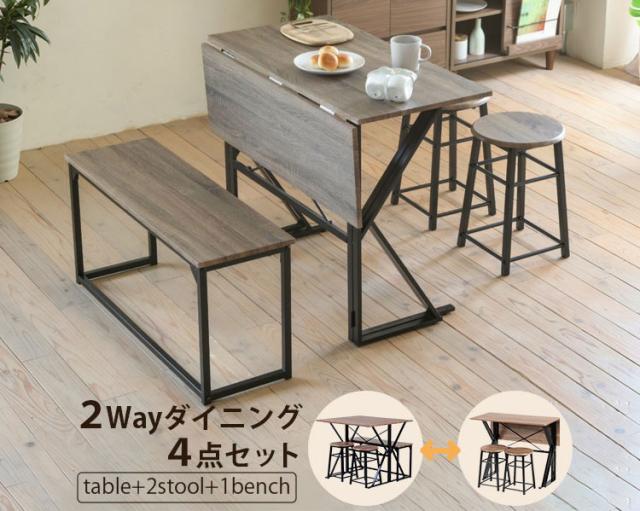 変形ダイニング4点セット 組み替え自由 ダイニングセット 4点セット ダイニング カウンター デスク 幅90 スツール ベンチチェア ダイニングベンチ ヴィンテージ調 おしゃれ(代引不可)【送料無料】