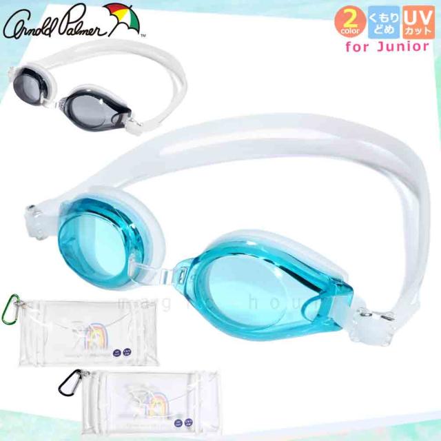 子供 水泳 ゴーグル ブランド スイムゴーグル ジュニア くもり止め UVカット ケース クッション 水中メガネ 女の子 男の子 キッズ アーノルドパーマー 黒 青
