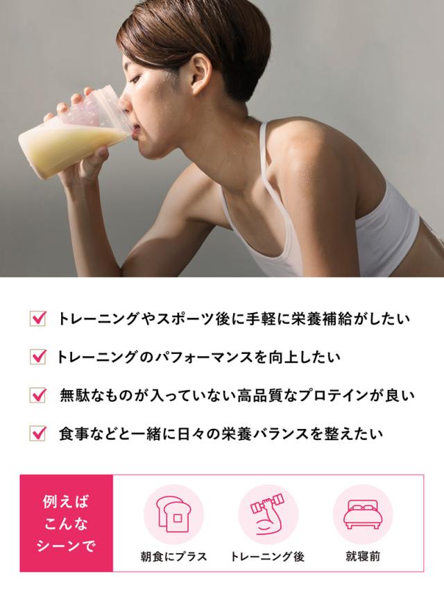 運動量や目的に合わせ、付属のスプーン2〜4杯(15〜30g)をコップ1杯(約100〜200ml)の水や牛乳などに溶かして、すみやかにお飲みください。(朝食にプラスして、またはトレーニング後や就寝前など)