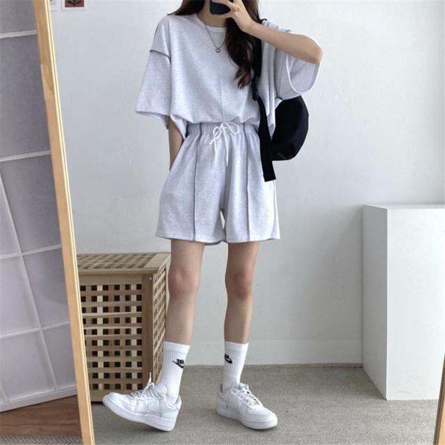 ジャージ セットアップ レディース 上下セット スウェット アメカジ 夏物 無地 半袖トップス 大きいサイズ 着痩せ 細身 韓国風