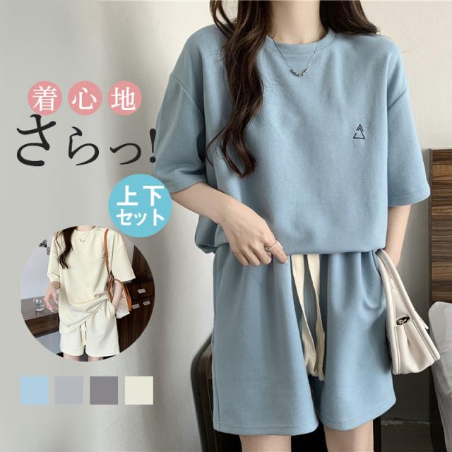 ジャージ セット レディース 上下セット スウェット 夏 パジャマ ゆったり ハーフパンツ ルームウェア 無地 運動用 ジム