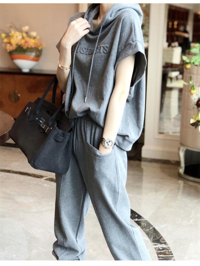 ジャージ セット レディース 上下セット スウェット アメカジ 袖なし フード付き トレーナー スポーツウェア 韓国風 おし