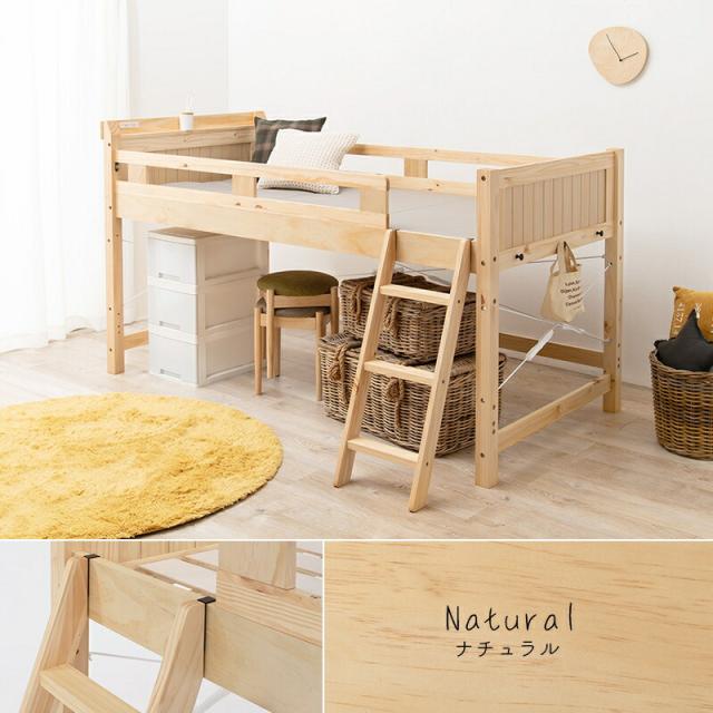 ロフトベッド ベッド下に収納 ロフトタイプ 木製 ベッド 一人暮らし 省スペース 家具 シンプル ナチュラル オシャレ 頑丈 ロフト すのこベッド 2口コンセント付 天然木