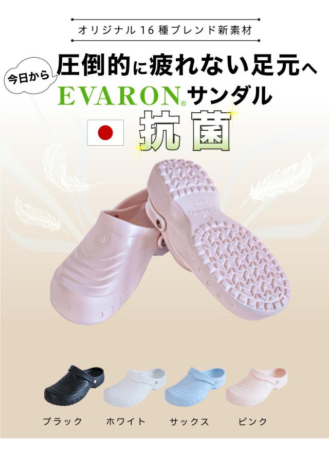 エバロン サンダル EVARON 婦人用 女性用 レディース 軽量 滑らない 抗菌 洗える 消臭 3E 幅広 サンダル 看護 介護 医療機関 ナース サンダル 学校 内履き 室内履き 日本製 ルームシューズ ベルト付 ホール 飲食店 厨房 安全 ソフト 市場 ピンク ブラック ホワイト