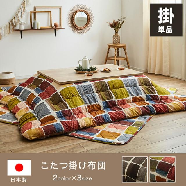 ■ パッチワーク風のデザインをしたこたつ布団です。 ■ 安心の日本製、国内綿入れ加工でボリュームたっぷり。 ■ 側地にはポリエステル素材を起毛させた柔らかい生地を使用しています。 ■ 裏地には肌触りなめらかなフランネル生地を使用しています。 ■ 部分暖房のこたつは電気代もおトクです。 ※ 本商品は圧縮梱包でのお届けとなります。 ※ 商品開封後は一切返品を承ることができませんので、あらかじめご了承ください。 ※ 掲載写真は表記サイズと異なる場合がございます。 ※ ふとんをやぐらの中に押し込んだり、座イスやイス全体をこたつの中に入れたまま使用しないでください。ふとんがヒーターに当たらないようにご使用ください。(火災の原因になります) ご使用により、ふとんが焦げた場合につきましては、返品・交換を承ることができませんので、あらかじめご了承ください。 ※ 画面上のカラーはご使用ブラウザやモニターの設定により、実物とは若干異なる場合がございます。あらかじめご了承の上、ご注文をお願いいたします。 | |