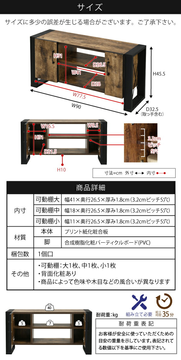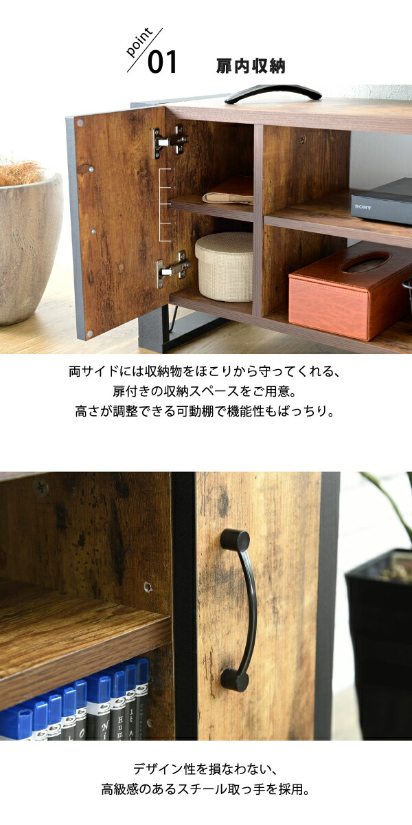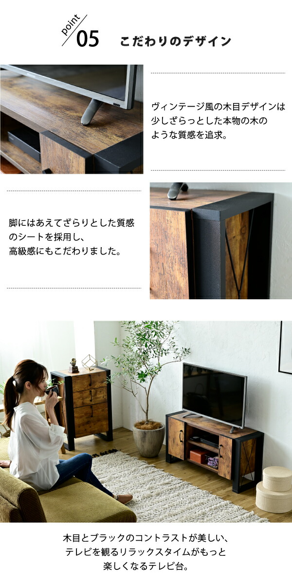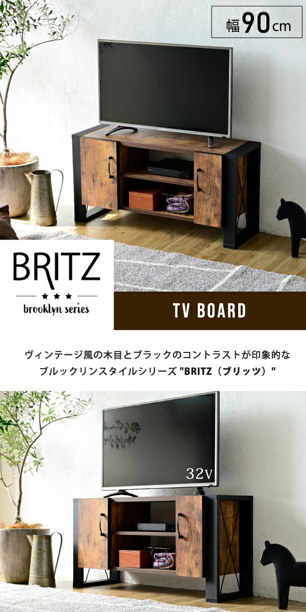 テレビ台 32型 対応 ヴィンテージ 風 幅 90cm ブルックリン インダストリアル アイアン レコーダー収納 木製 脚付き 扉付き 棚付き ひとり暮らし コンパクト