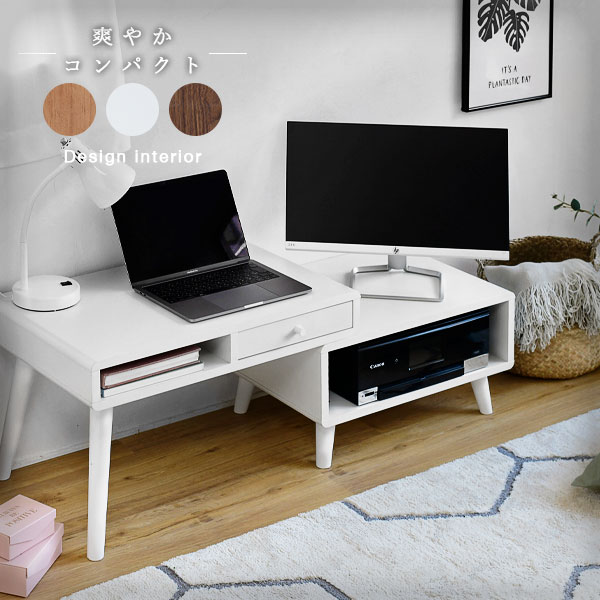ローデスク プリンター収納 引き出し 幅65〜110 奥行41.5 高さ40 Pico 伸縮デスク ローテーブル サイドテーブル コンパクト かわいい ロータイプ テレワーク