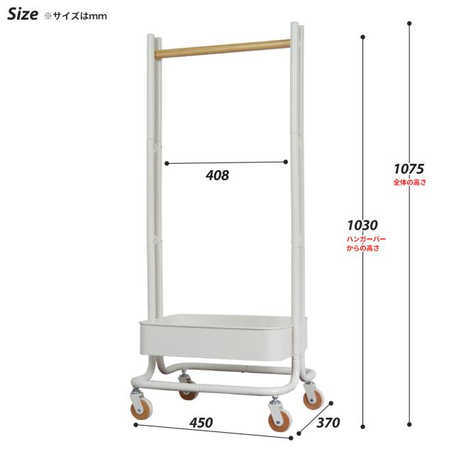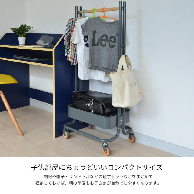 ランドセル収納 ハンガーラック ランドセルラック キッズハンガー ROSSINI ROHR-45 子供用 キャスター付き 幅45 高さ107.5 省スペース コンパクト バスケット付き フック付き スリム おしゃれ 可愛い シンプル 衣類掛け 洋服掛け 入学祝い ロッシーニ キッズハンガー
