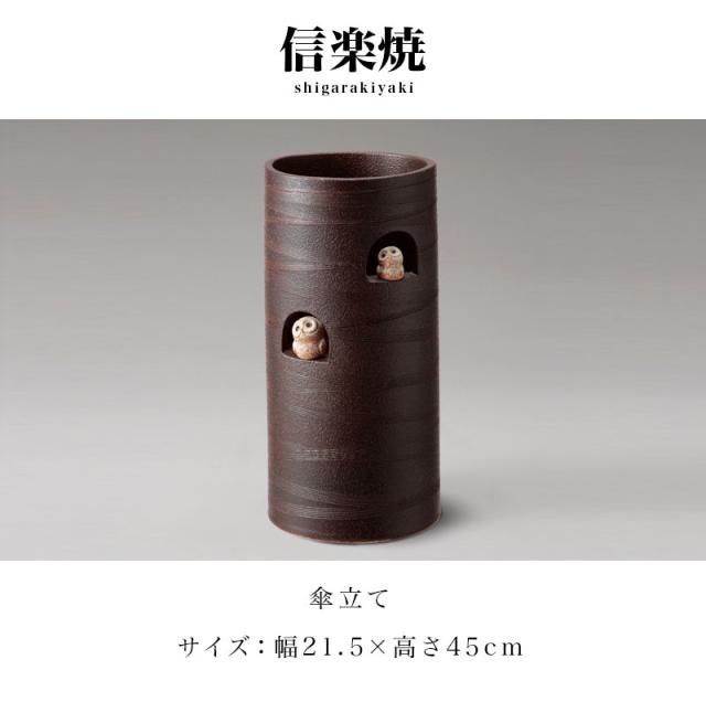 傘立て 信楽焼き ニコニコふくろう 幅21.5 高さ45 しがらき カサ立て 陶器傘立 玄関 信楽焼 お洒落 おしゃれ 陶器 和風 モダン インテリア 和雑貨 送料込み 新生活 NHK 連続テレビ小説 スカーレット