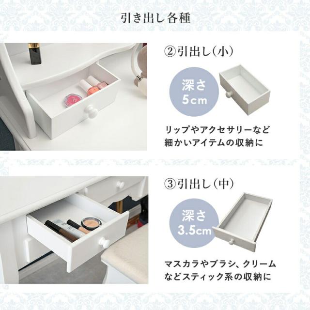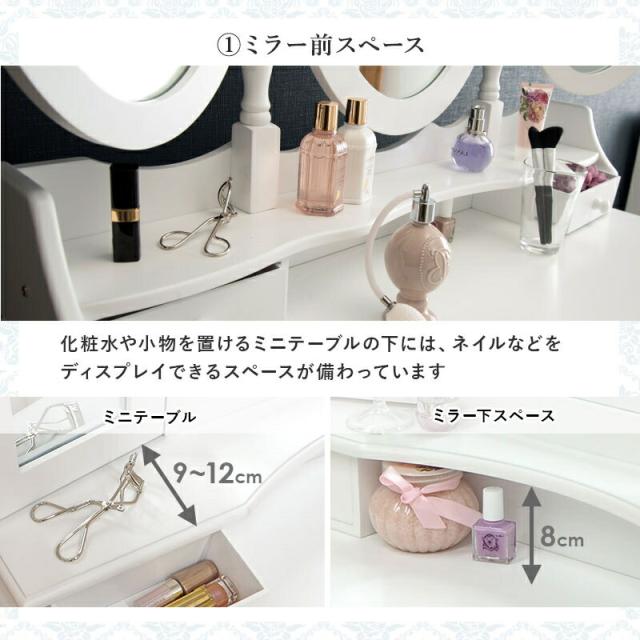 ドレッサー ホワイト 楕円形 オーバル ミラー 三面鏡 オシャレ 曲線 上品 ドレッサー セット スツール付き ドレッサー スツール