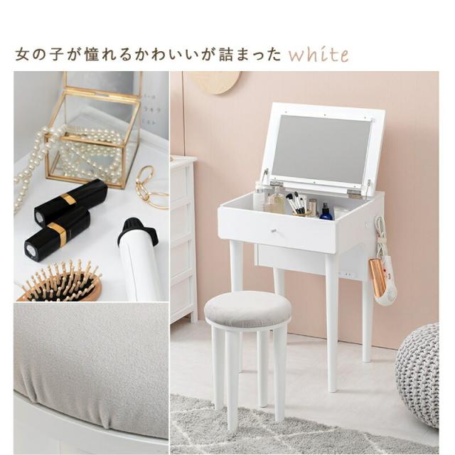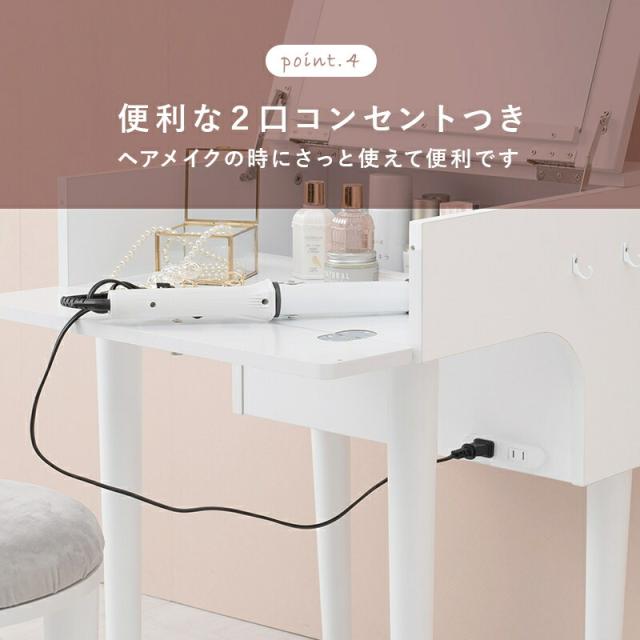 ドレッサー 2口コンセント スツール付き 便利 ドレッサーセット 簡易デスク 一人暮らし ワンルーム 省スペース 家具 ドレッサー 木製 スツール