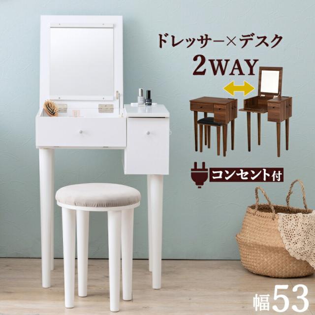 ドレッサー ミラー デスク ドレッサー 鏡 ミラー 角度が調節できる 2口コンセント付き
