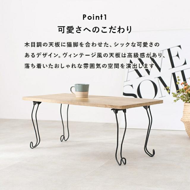 折れ脚テーブル センターテーブル ローテーブル リビングテーブル おしゃれ 古木風 木目 猫脚 シック 可愛い カワイイ 女の子 家具 折りたたみ 折り畳みテーブル おしゃれ コンパクト 折りたたみ式