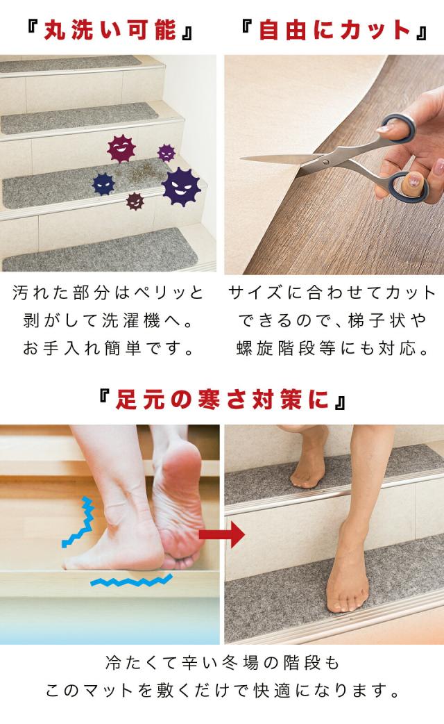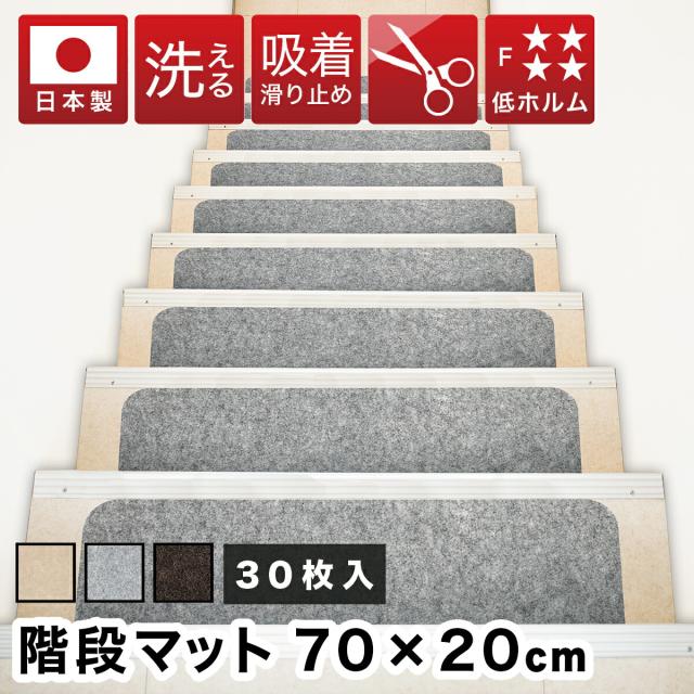 吸着階段マット 幅70cm 30枚 階段 滑り止め 洗える フリーカット 階段用 吸着マット おくだけ はがせる 滑り止めマット 犬 梯子 螺旋階段 猫 ペット 傷防止 置くだけ 固定 強力 ズレない 足音 防音 カット可能 丸洗い 水洗い 洗濯 転倒防止 冷え対策 賃貸 低ホルムアルデヒド