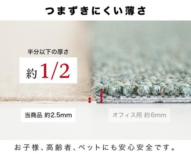 ※長時間敷き詰めたままにしておくと、床面から剥がしにくくなる場合があるため、月に一度を目安に、めくって風通しをしてください。