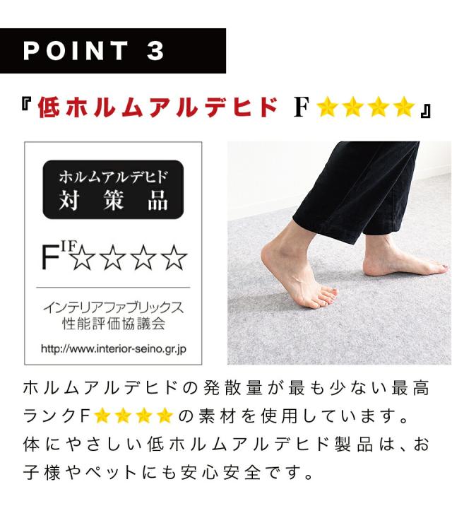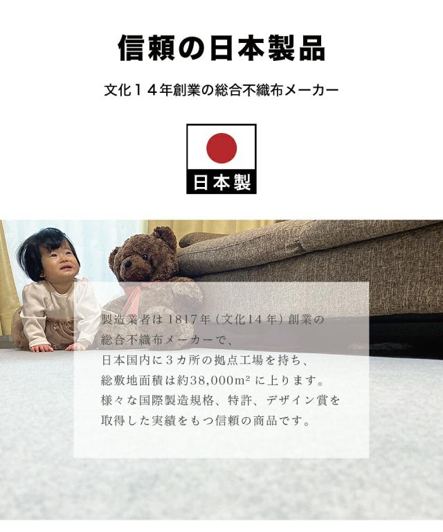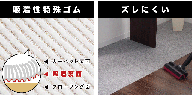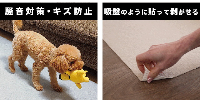 ※長時間敷き詰めたままにしておくと、床面から剥がしにくくなる場合があるため、2週間に一度は、めくって風通しをしてください。