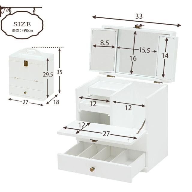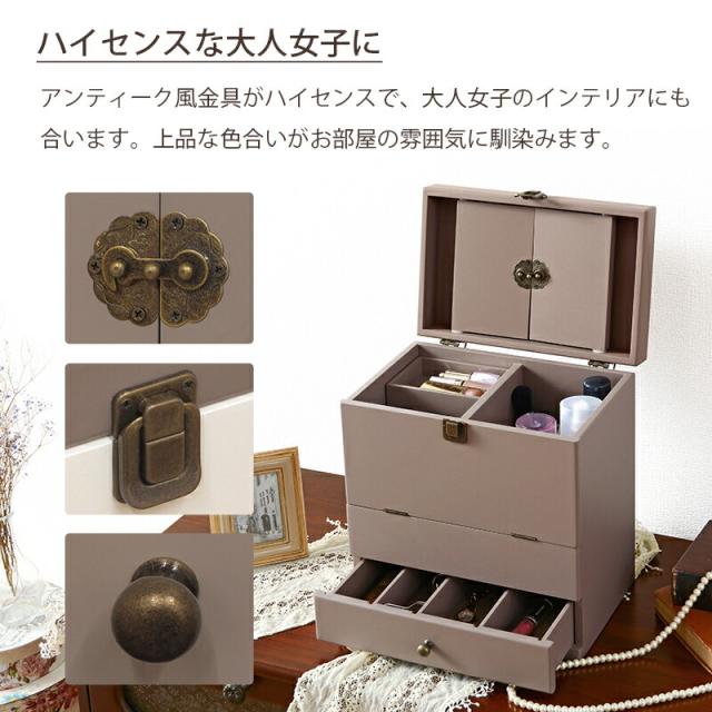 コスメボックス アンティーク風 大人かわいい コスメボックス メイクグッズ 整理 可愛い カワイイ 三面鏡 アンティーク調 コスメ収納ボックス メイク