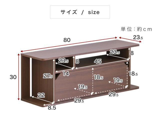 Switch収納台 コンパクト 幅80 cm スイッチ 収納 テレビ台 ローボード TV台 高さ30cm TVラック スウィッチ テレビボード ロータイプ ハチマル 32型 コンパクト 扉付き リビングボード 木製 TVボード 32インチ オーディオラック シンプル おしゃれ リビング 収納 一人暮らし