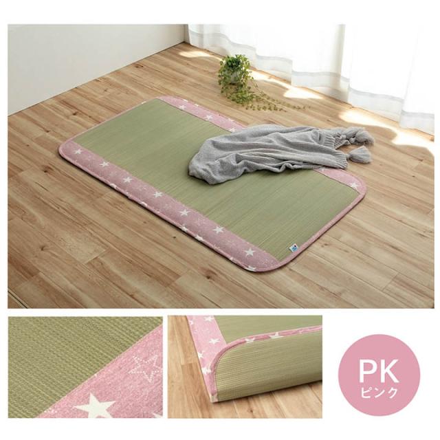 日本製 い草 い草マット 子供用 お昼寝 シンプル 星柄 ブルー 約 70×120cm