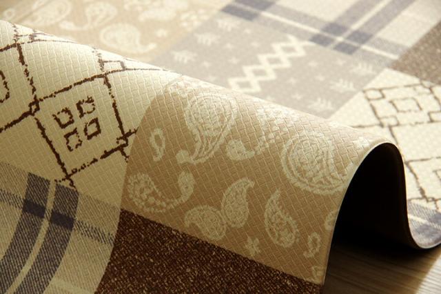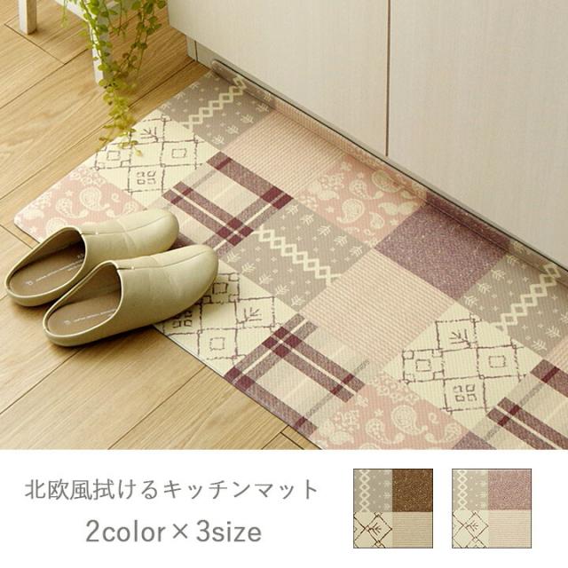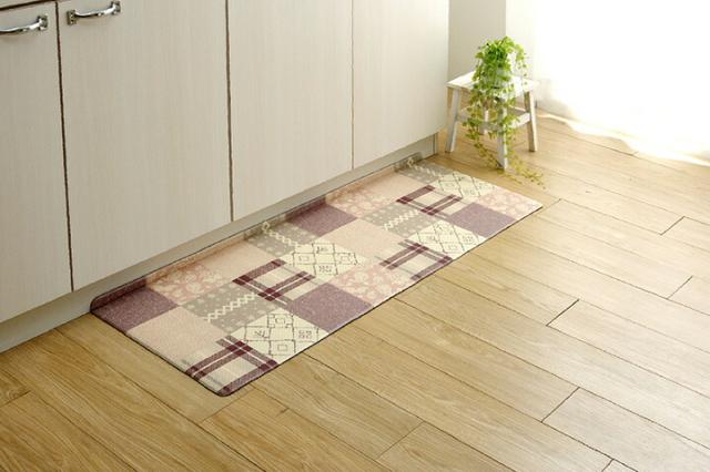 キッチンマット PVC 使用 お手入れ簡単 拭ける お掃除ロボ対応 すべりにくい 薄手 耐圧分散 北欧風 カントリー調 ベージュ 約 45×240cm